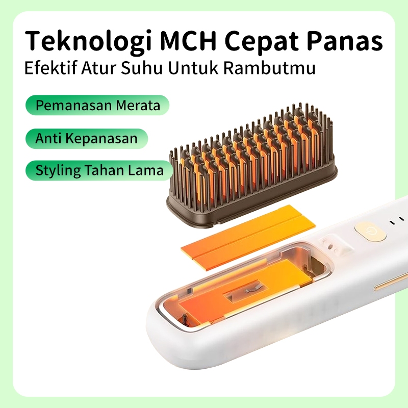 Soseki Nirkabel Hair Straightener Brush Ion Negatif Catokan Rambut Sisir 7000mAh Baterai SSP-ZFS01ID