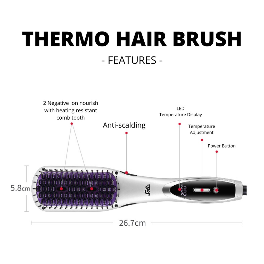 Solis Thermo Hair Brush - Sisir Elektrik Solis + Free Pouch