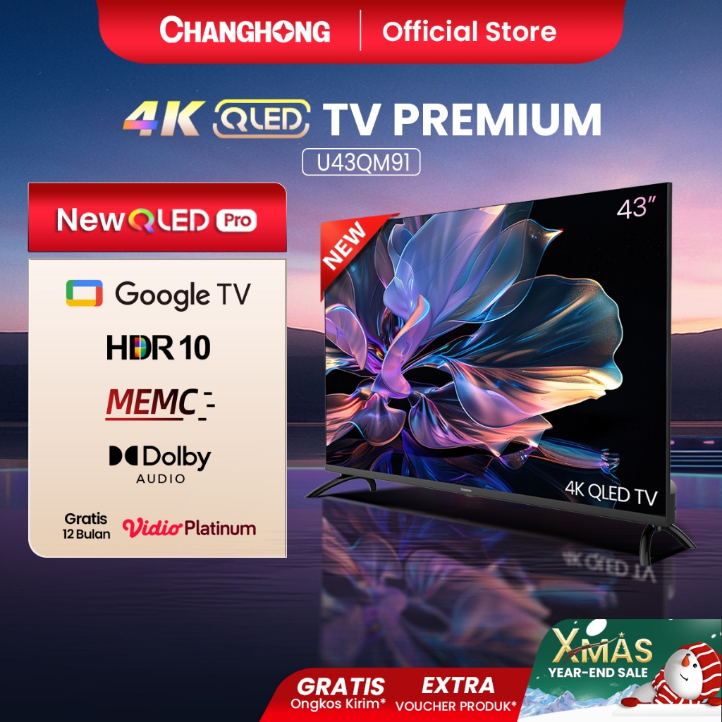 Changhong QLED TV 4K 43 inch Google Smart QLED PRO Digital TV Dolby Audio DBX-TV Google Play Netflix Youtube Bluetooth U