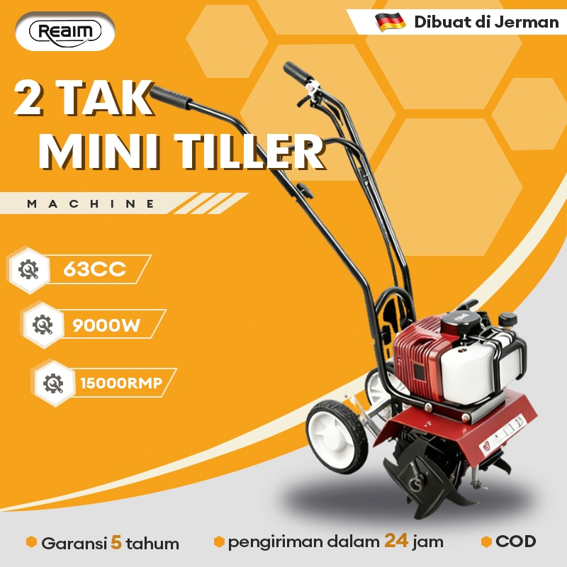 Reaim Mini Cultivator Mini Tiller Bensin 52CC 2-Stroke Tiller Scarifier micro Petrol Engine Rotary Mini Tiller Tanah Kec