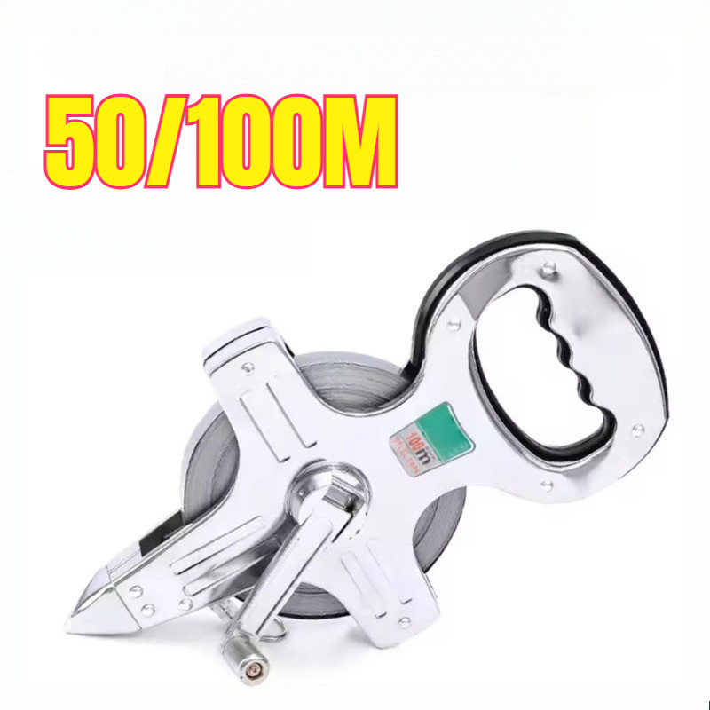 100meter/50meter Stainless Steel Meteran Tancap Tanah Panjang Meteran Roll 50M Meteran Gulung Fiber