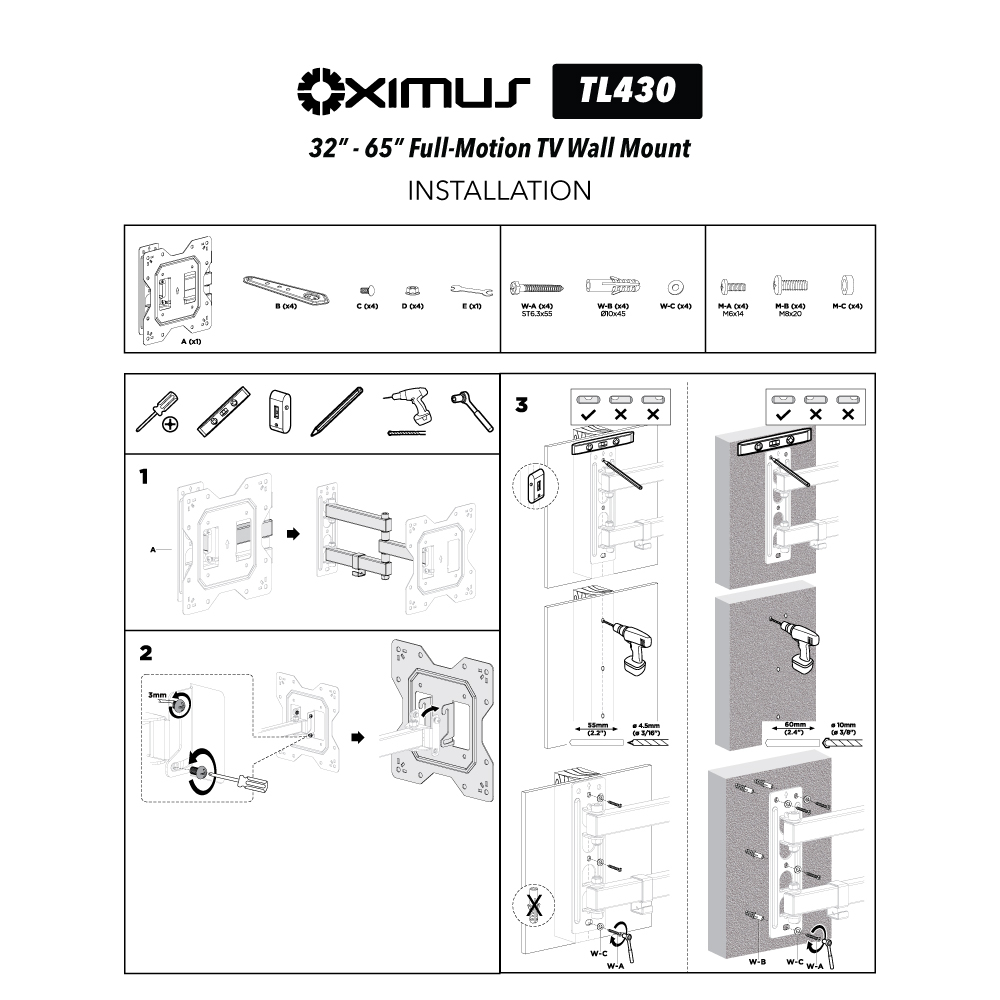 BRACKET TV LED LCD MONITOR 32" - 65" OXIMUS TL430 FULL- MOTION TV WALL MOUNT