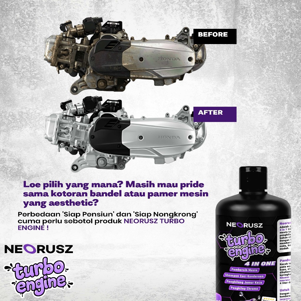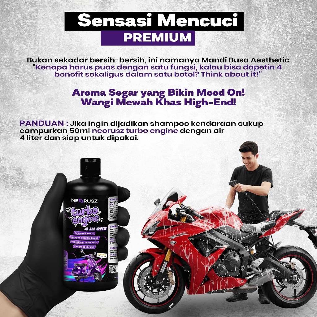 Neorusz Turbo Engine - Sabun Shampoo Wax Cuci Kendaraan Motor Mobil Ph Friendly Aman Untuk Body Kendaraan Ukuran 1 liter