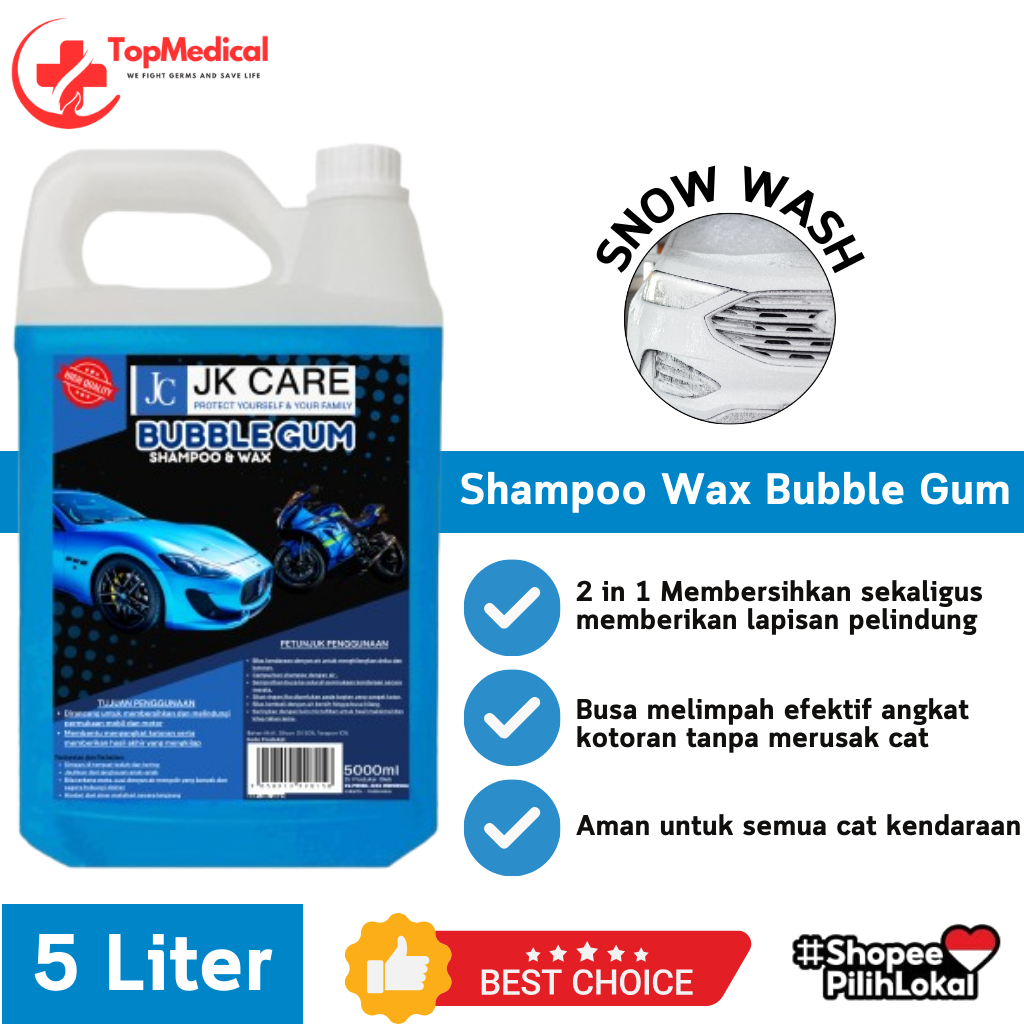 Shampoo Wax Mobil Motor 5 Liter Bubble Gum Aman untuk Segala Cat Kendaraan