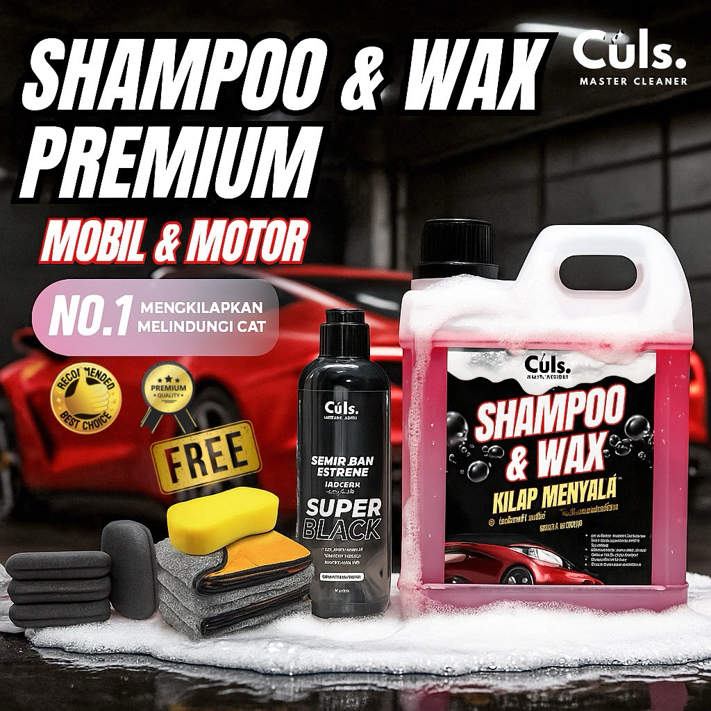 Paket Shampoo Wax PREMIUM 1 Liter Bonus Semir Ban Mobil Dan Motor Bersih Mengkilap PH Balance Cuci Salju