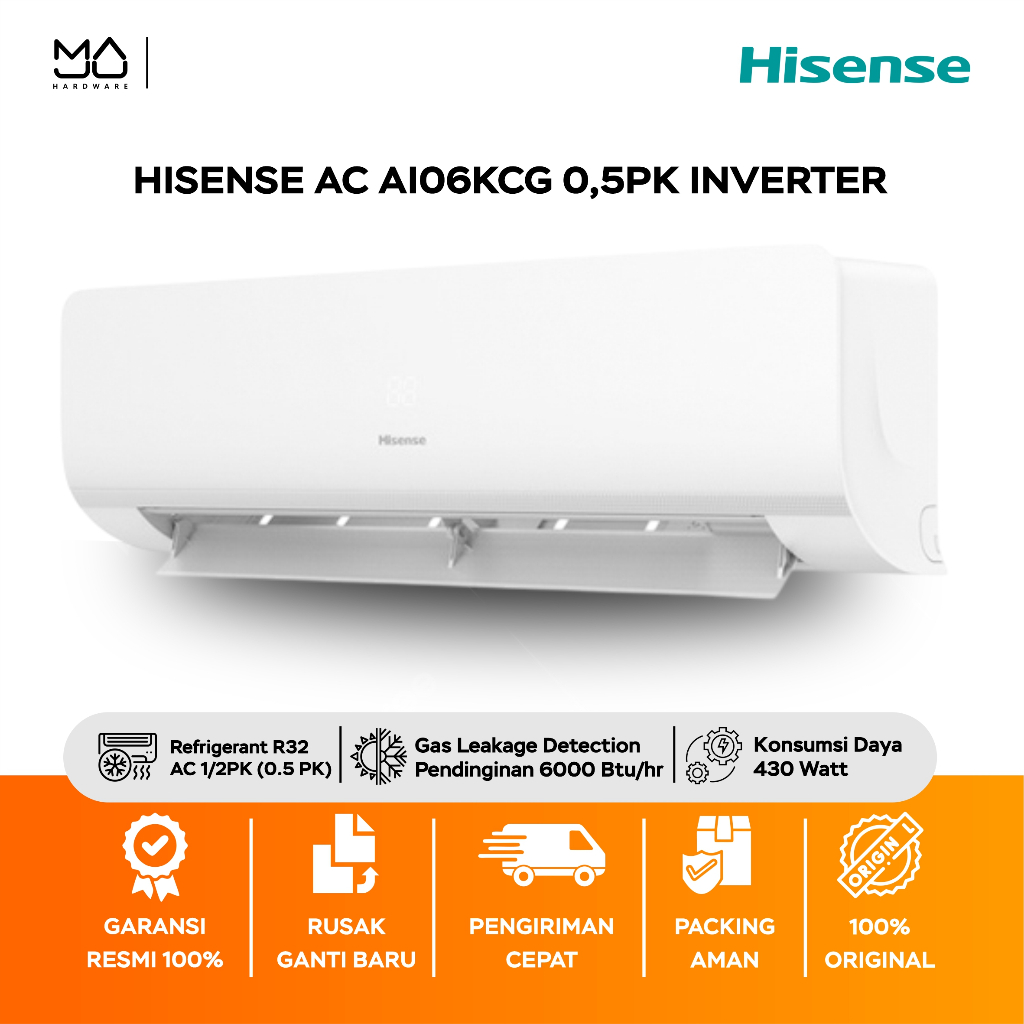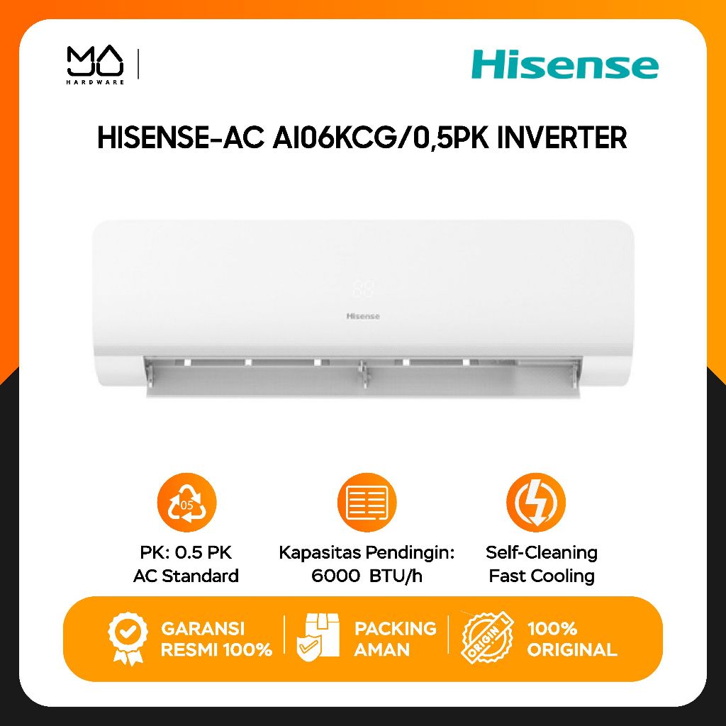 Hisense AC 1/2PK (0.5 PK) Inverter - AI06KCG (Indoor+Outdoor Unit) - Garansi Resmi
