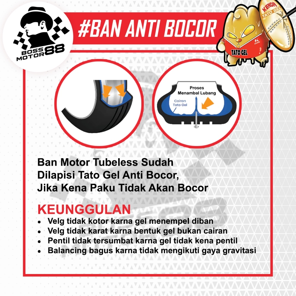 Ban Kenda Tubeless Tubles Tato Gel Motif K488D 70/90-17 Ban Anti Bocor Motor Supra Karisma Original