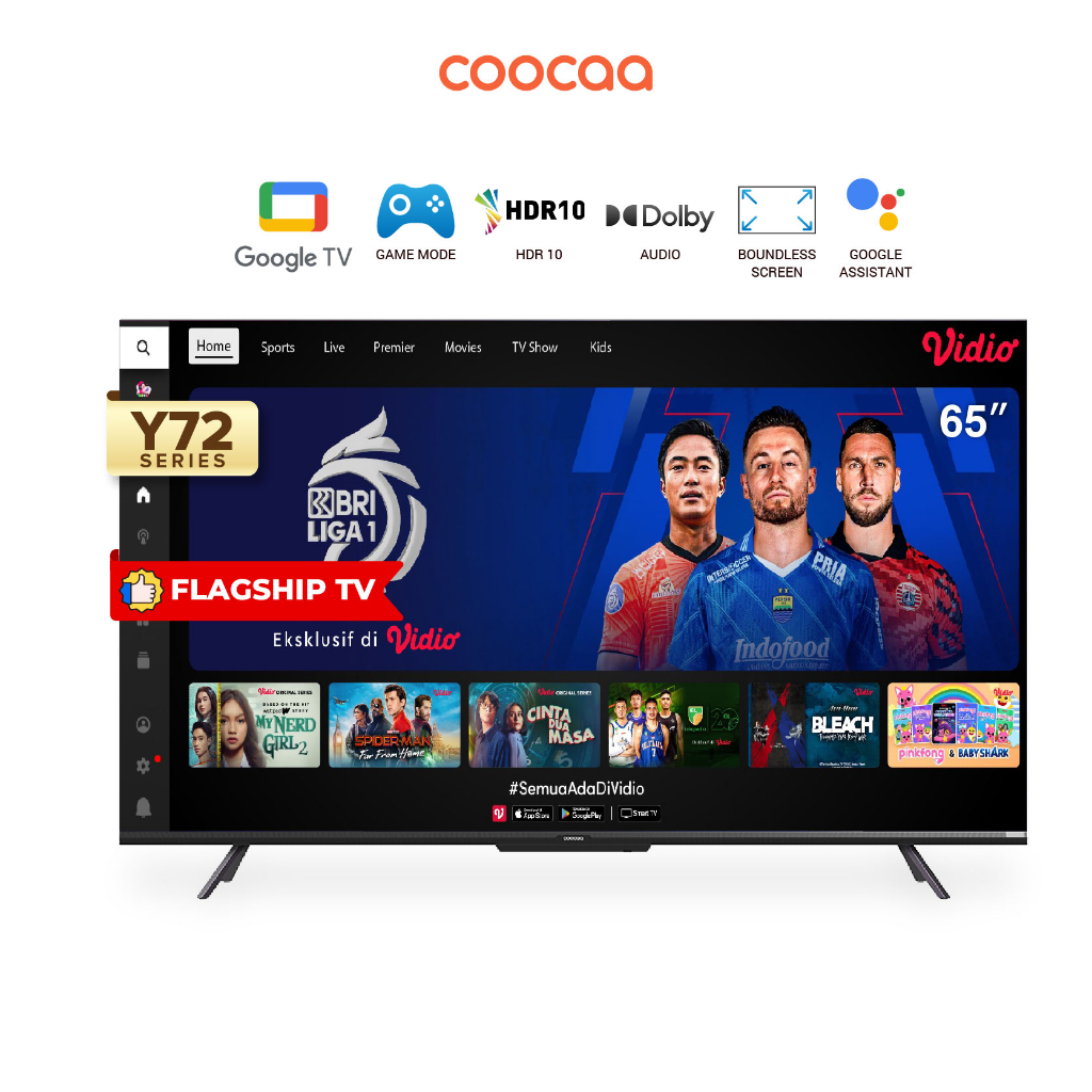 COOCAA TV 65 inch Y72 - 4K GOOGLE TV - Smart TV - EYE CARE - Google Assistant - Dolby Audio - Low Blue Light - Flicker F