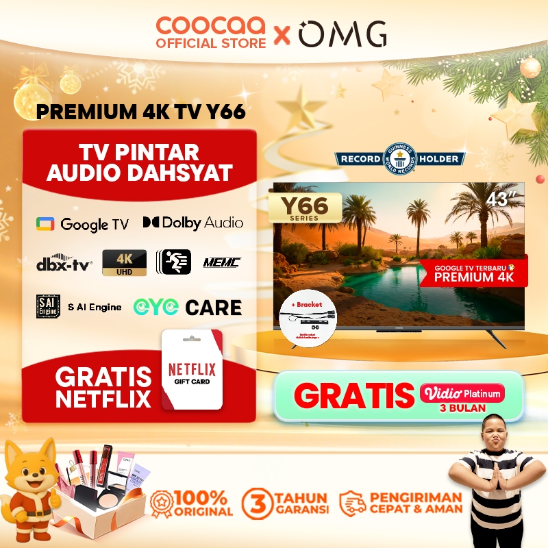 [BRACKET+] TERBARU COOCAA TV 43 inch Y66 - 4K Google TV - S AI Engine - MEMC - HDR10/HLG - Find My Remote - Eye Care (CO