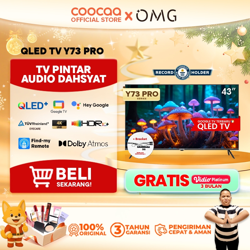 [BRACKET+] COOCAA TV 43 inch Y73 PRO - 4K QLED+ - Google TV - Flicker Free/Eye Care/Low Blue Light - Find My Remote - Do