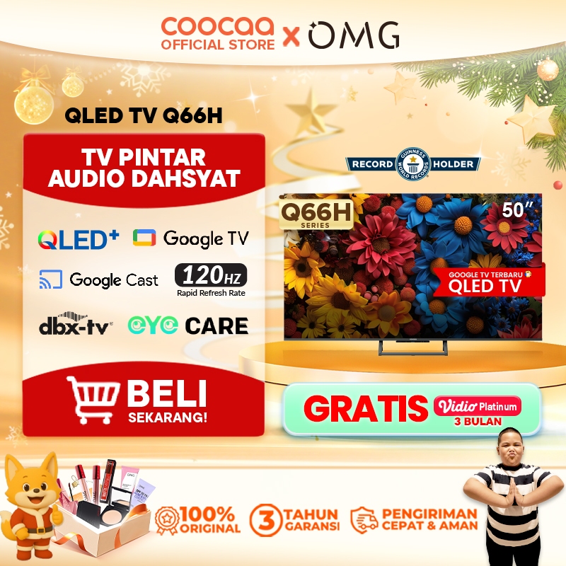 TERBARU COOCAA TV 50 inch Q66H - 4K QLED+ - Google TV - S AI Engine - MEMC - 120Hz Motion - dbx-tv - Dolby Audio - VRR -
