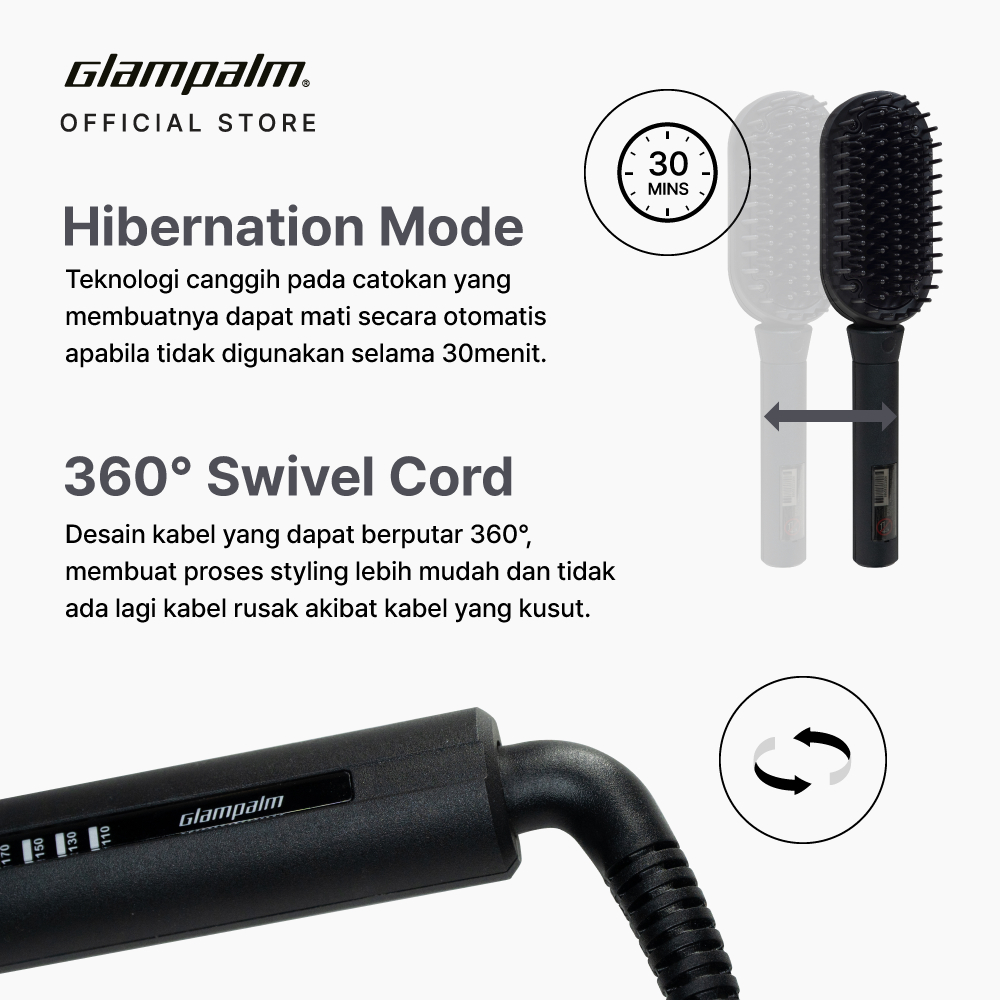 Glampalm OG Hot Brush Straightener/Sisir Panas Pelurus Rambut GP621AG