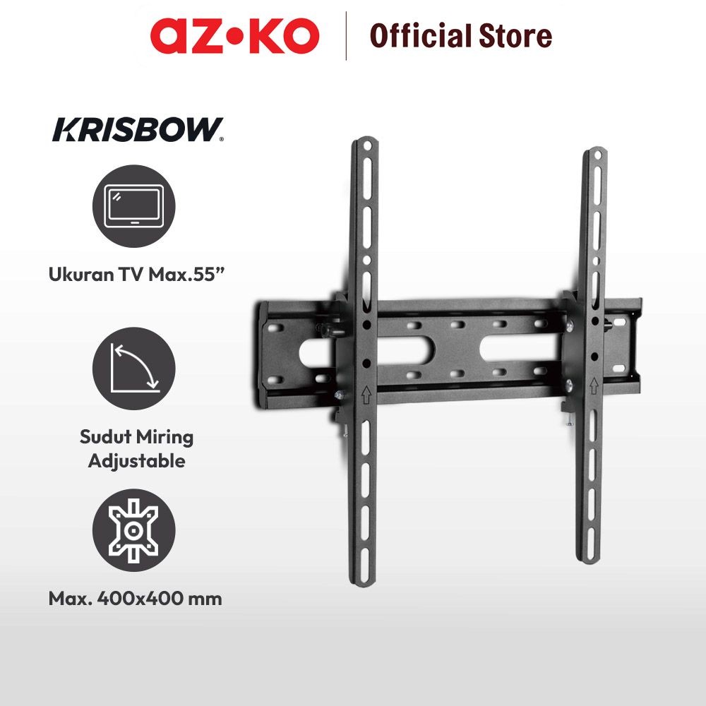 AZKO Krisbow Bracket Tv Dinding Tilt 32-55 inci - Hitam Fixed Fixture Television Penyangga Televisi Breket Gantung Tv Br