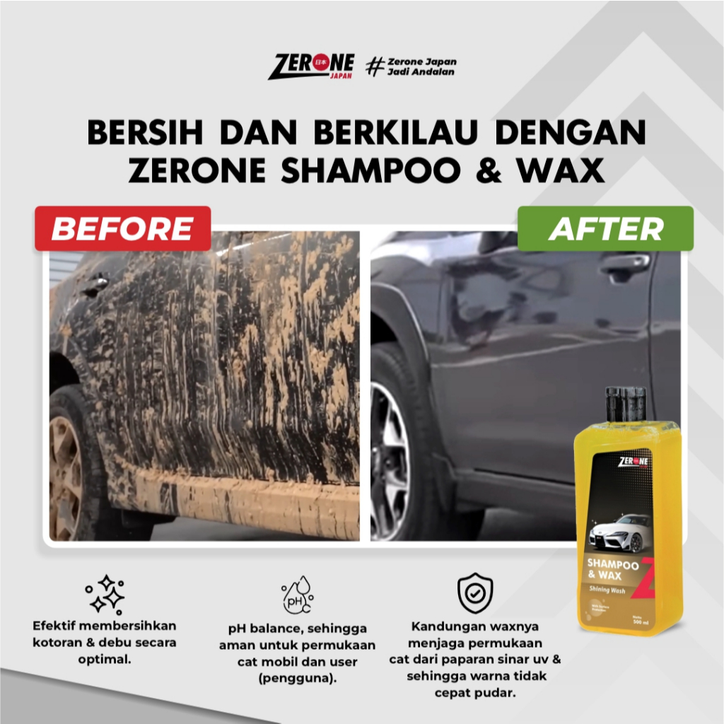 Zerone Shampoo & Wax Sabun Cuci Motor dan Mobil Pembersih Bodi Motor Premium Extra Foam Busa Melimpah