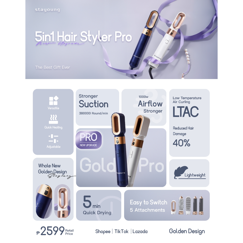 “PRO”STAYOUNG 5-in-1 Hair Styler C1-Pro, Alat Pengering Rambut Multifungsi 5-in-1, Sisir Udara Panas Multi-Kepala yang D