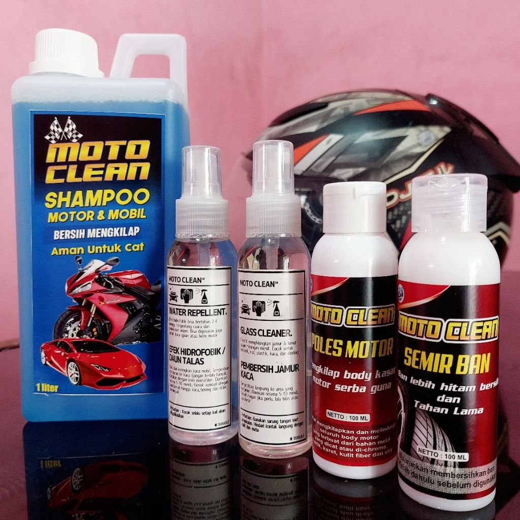 5 in 1 PAKET KOMPLIT Sabun cuci motor dan mobil 1Ltr MOTO CLEAN