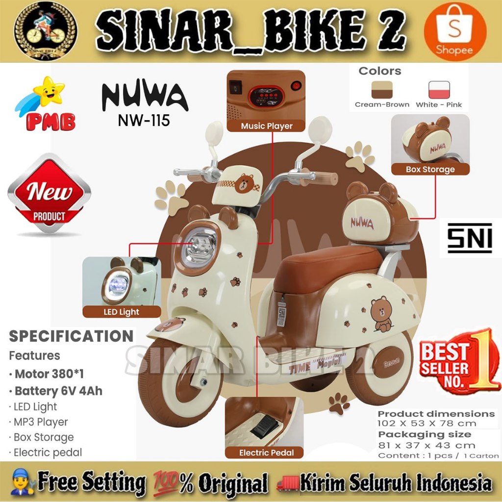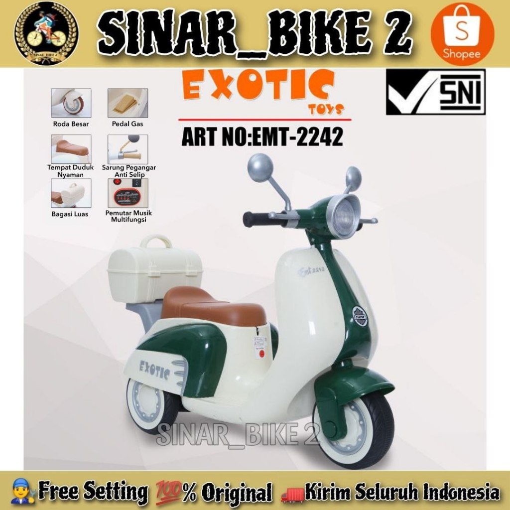 Motor Aki Anak EXOTIC EMT 2242 // PMB NUWA NW 113 // PMB NUWA 115 Vespa Mainan Anak Motoran