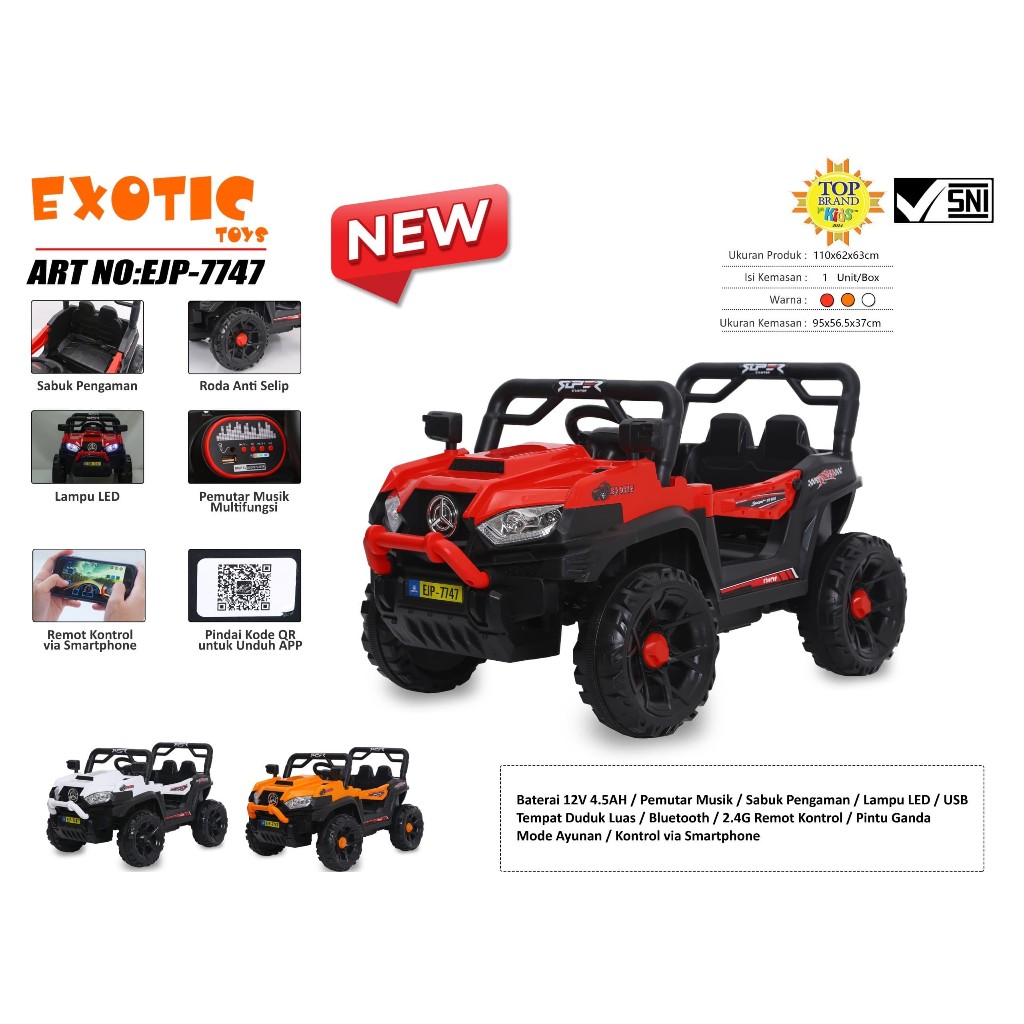 Mobil Aki Anak EXOTIC Jeep EJP-7747 EJP7747 Remote Remot Murah Kendaraan Mainan Mobilan Jeep