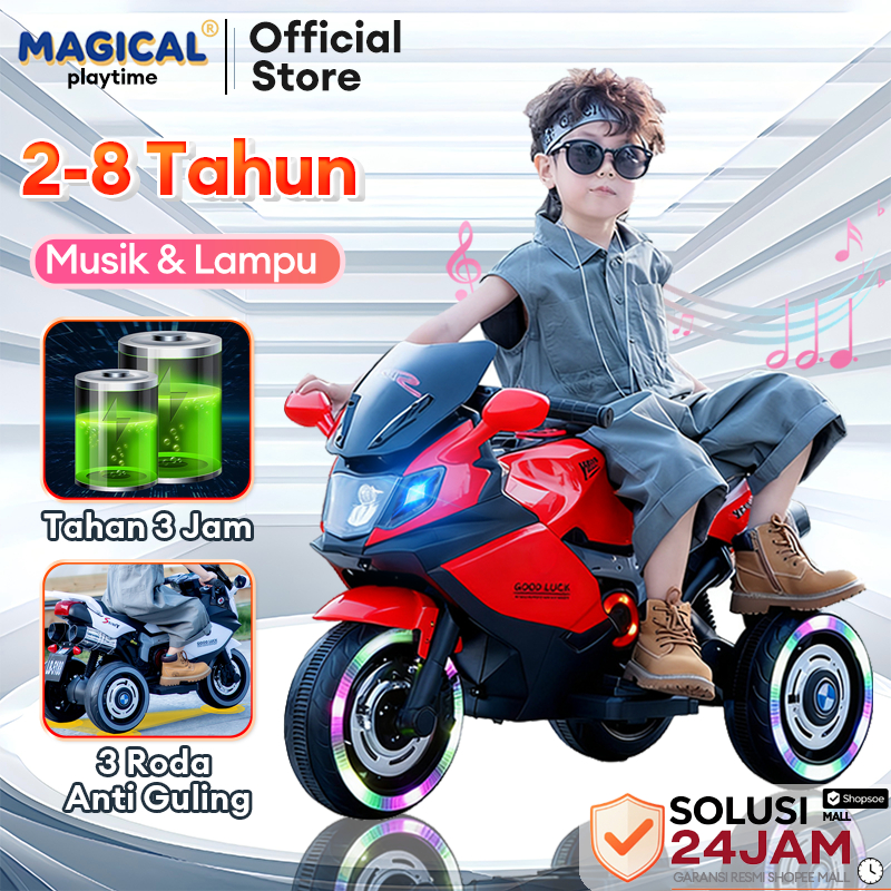 MAGICAL PLAYTIME mobil motor aki anak PMB vespa anak Musik & Lampu,Usia 2-8 Tahun mainan anak
