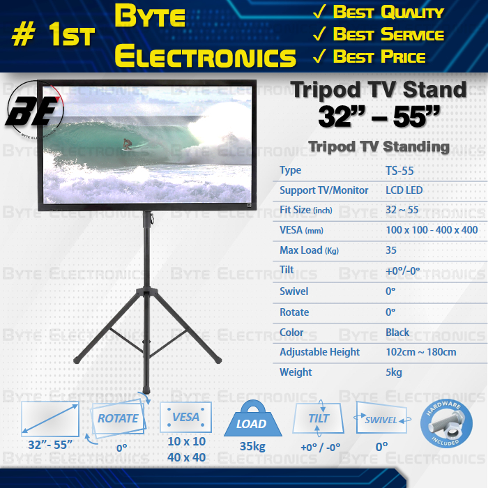 Braket Breket Bracket TV Standing Tripod 19 22 24 27 29 32 37 40 42 43 50 55 inch, Tripod TV Portrait Landscape Adjustab