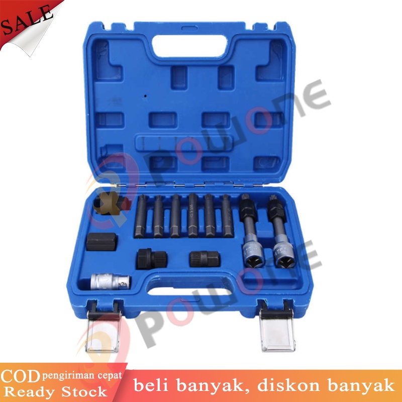 Powone 13 pcs 13 Buah Alternator Alat Katrol Kit Alternator Set Alat/Perbaikan/Penghapusan/Pulley Crankshaft Alat Katrol