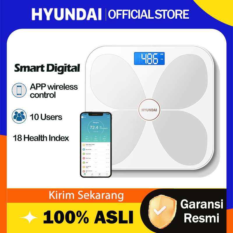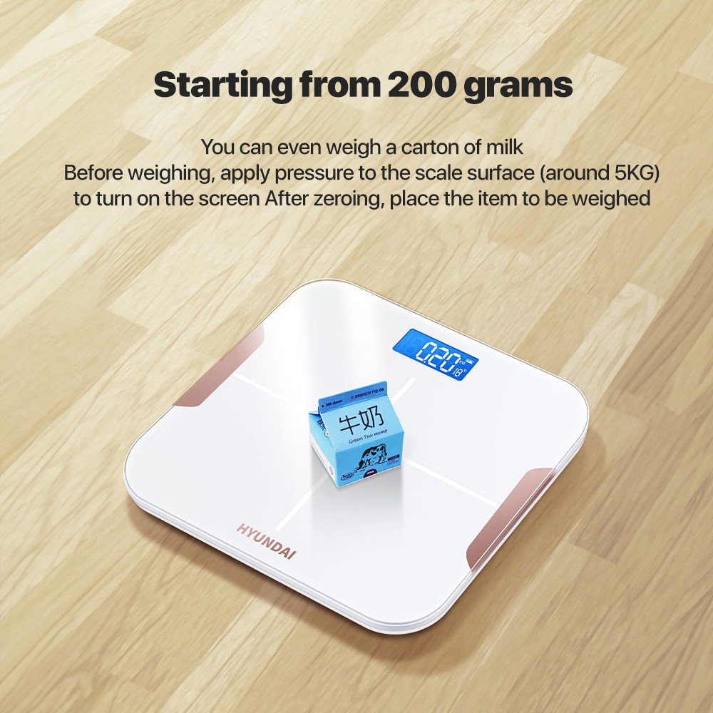 Hyundai Smart Digital Body Scale Timbangan Badan Digital Pengukur Kadar Lemak BMI Otot Smart Body Fat Scale USB Charging