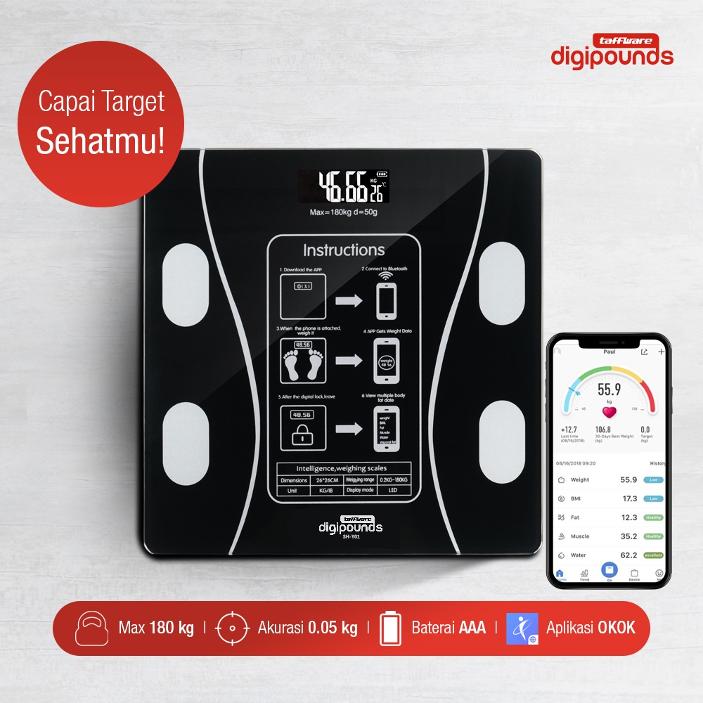 Taffware Digipounds Timbangan Badan Digital Health Scale 180KG SH-Y01