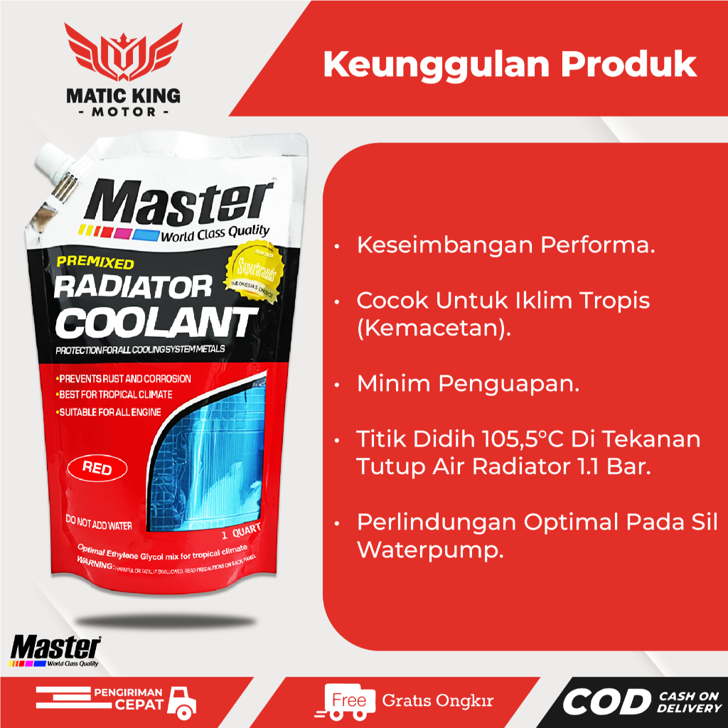 MASTER Air Radiator Coolant Pendingin Motor Mobil Premixed Refill 1 Quard Merah Red