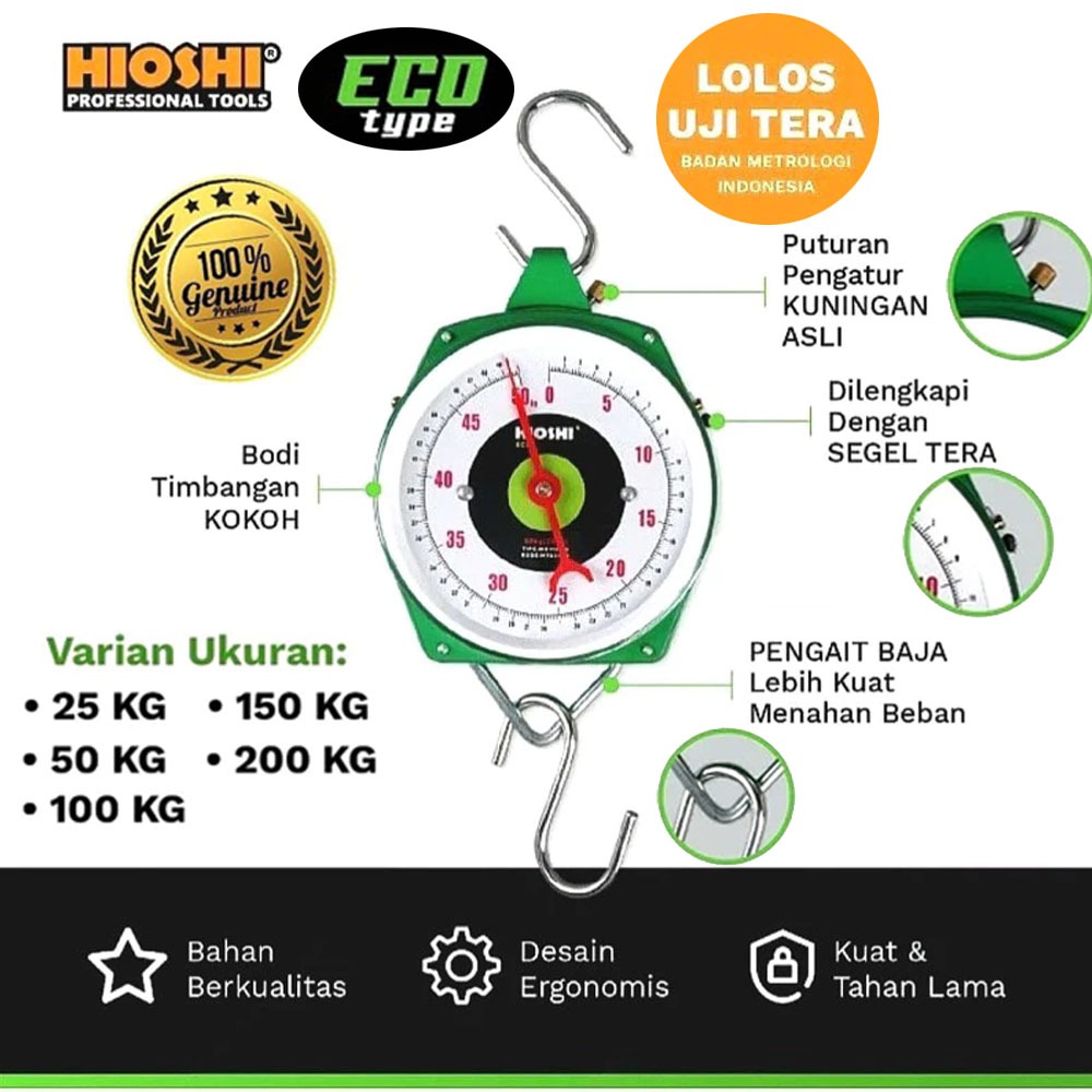 HIOSHI / Timbangan Gantung/Manual/Analog/Lonceng/Jam/Buah/Sayur/150kgs 200Kgs - Eco