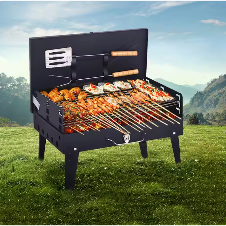 Panggangan Portable JUMBO Panggangan Ikan Sosis Sate Bakar Anti Lengket BBQ Outdoor Grill Stove Foldable