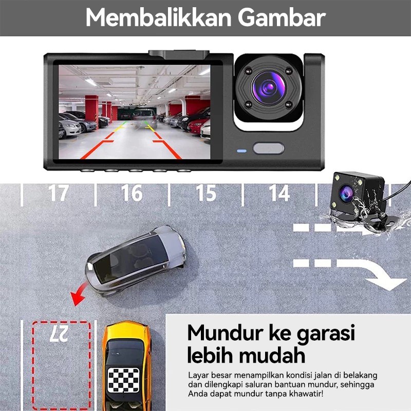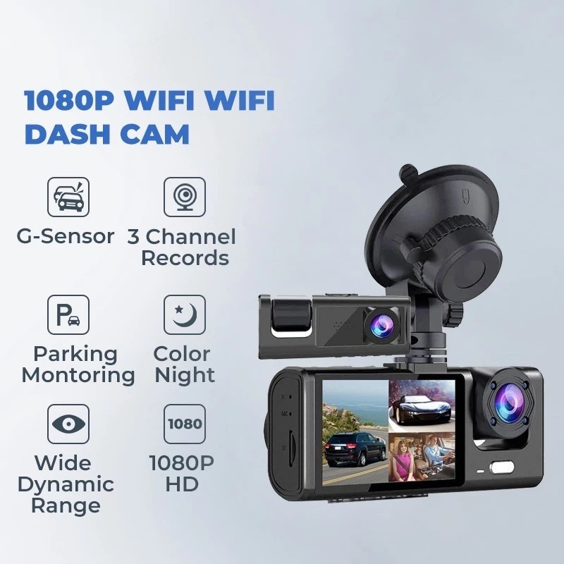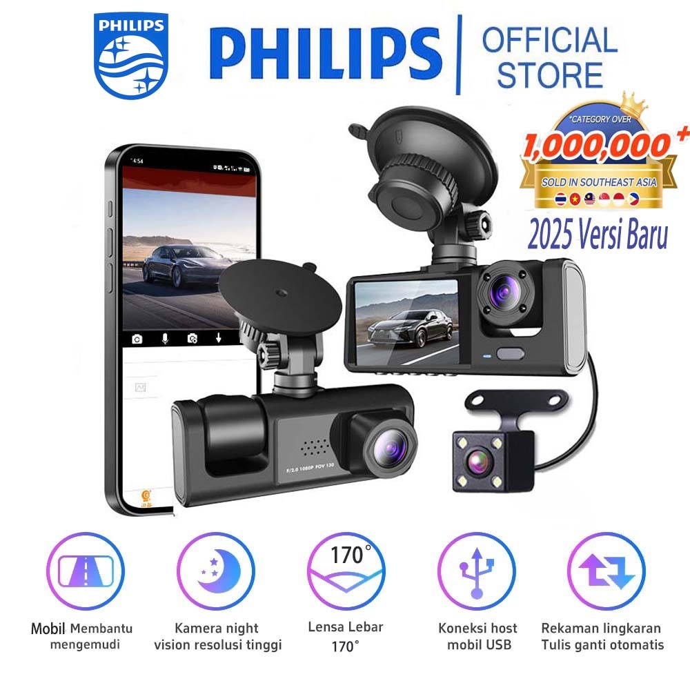 Philips Dashcam Mobil 310°Perekaman Video Gratis 128GB SD Wifi GPS 3 Cameras 1920HD Multifungsi Smart Kamera