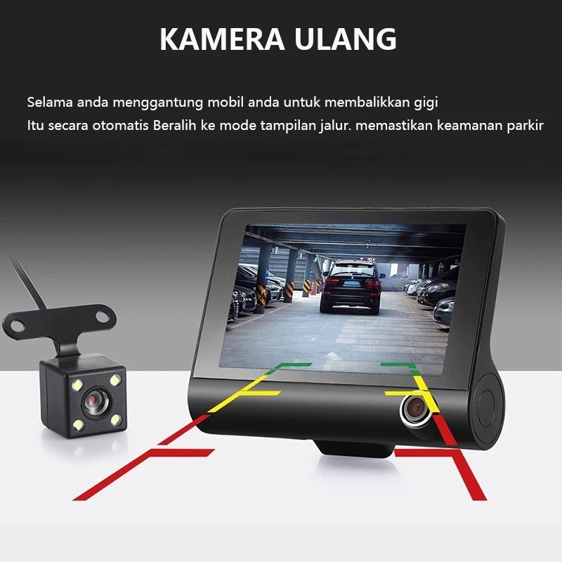 PHILIPS cctv Dashcam Mobil 3 Cameras 1080p full hd G sensor 4.0 Inch Night Vision Loop Recording