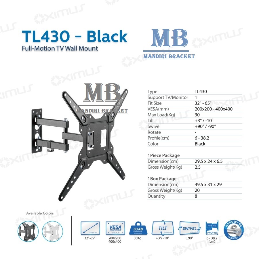 BRACKET TV SWIVEL | SIZE 32"-65" OXIMUS TL430 FULL- MOTION TV WALL MOUNT FREE WATERPASS & KUNCI PAS