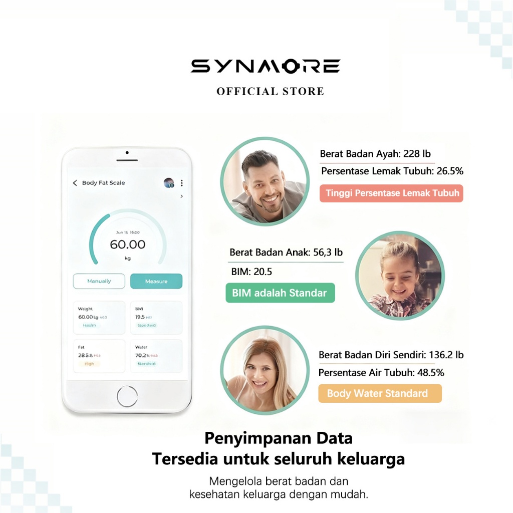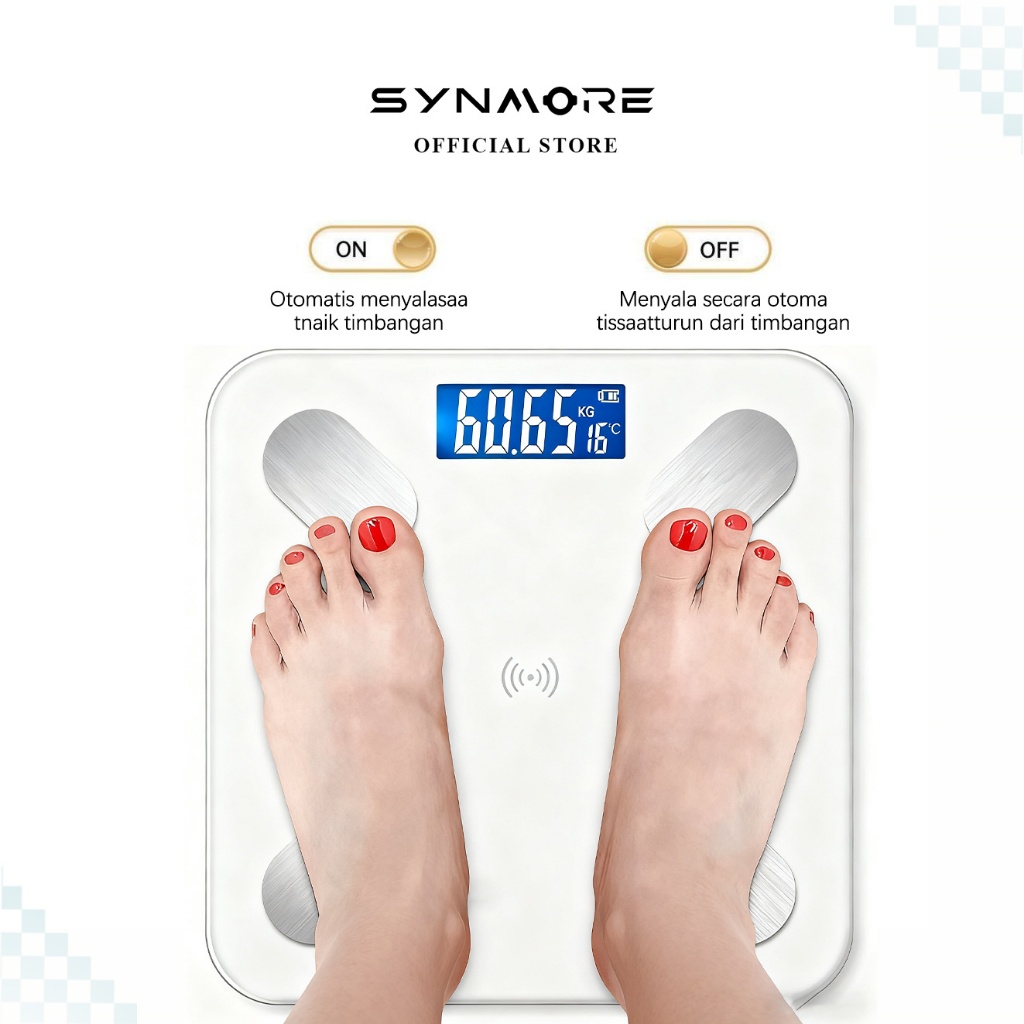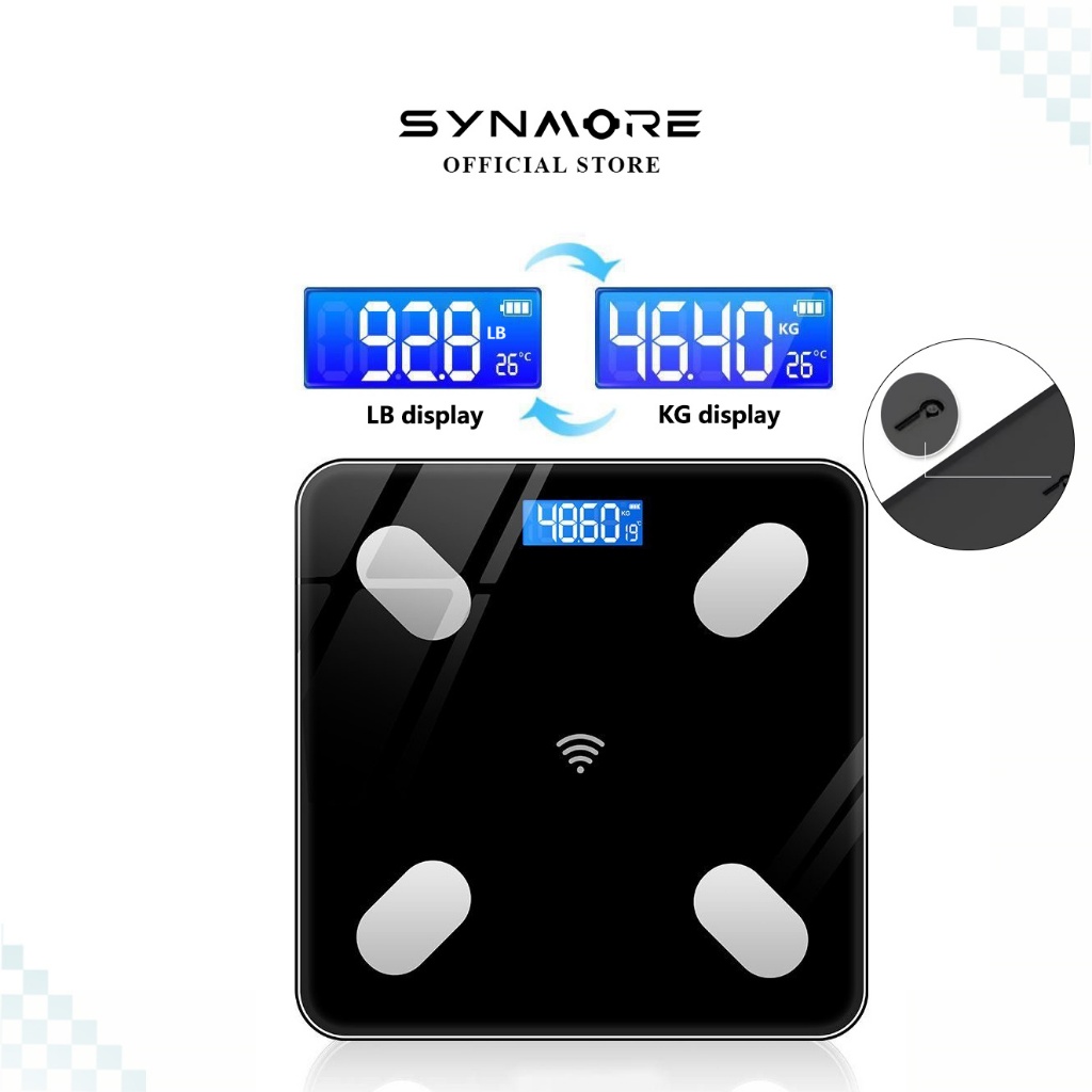 Synmore Timbangan Badan Fat MAX 180KG USB Charge Lemak Tinggi Smart Digital Weight Scale 26x26cm