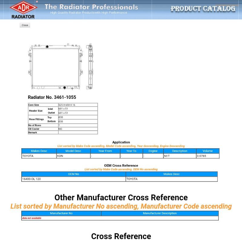 ADR Radiator Toyota Innova or Grand Innova M/T 3461-1055C