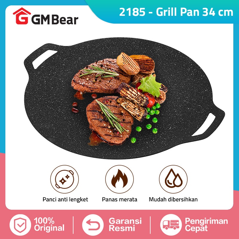GM Bear Grill Pan 34 cm 2185 - Wajan Pemanggang Bulat Panggangan BBQ Anti Lengket 34 cm