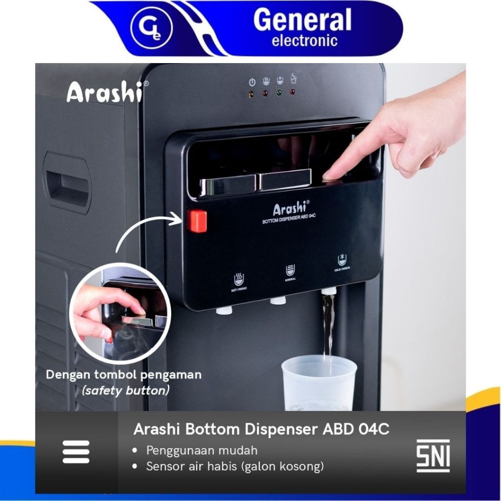 Dispenser Arashi Galon Bawah Digital ABD 04 Hitam - Fitur Panas Dingin Normal - 3 Kran