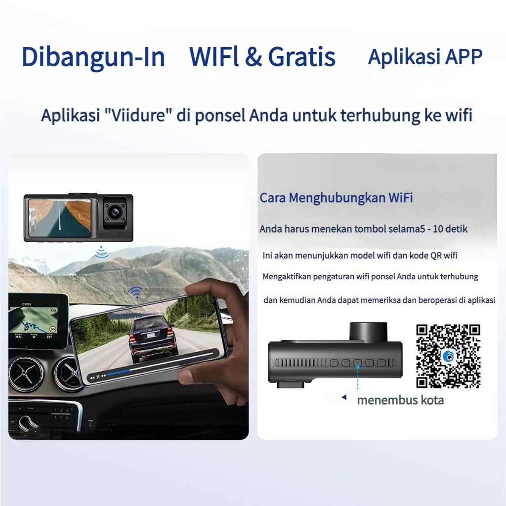 Philips Dashcam 3 Cameras HD Night Vision WIFI Bisa Nyambung Ke HP Pengawasan parkir 24 jam
