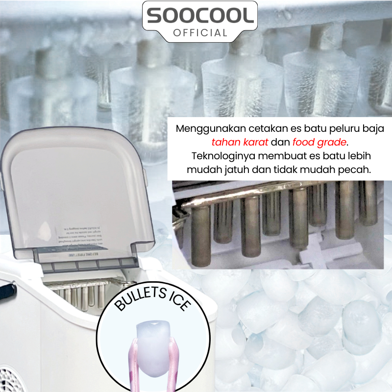 SOOCOOL SC-12B Mesin Pembuat Es Batu, Ice Maker Mini 1,1 Liter Mesin Es Batu Portable Praktis Dapur & Kantor