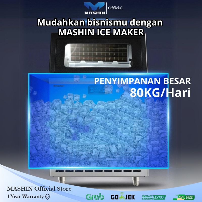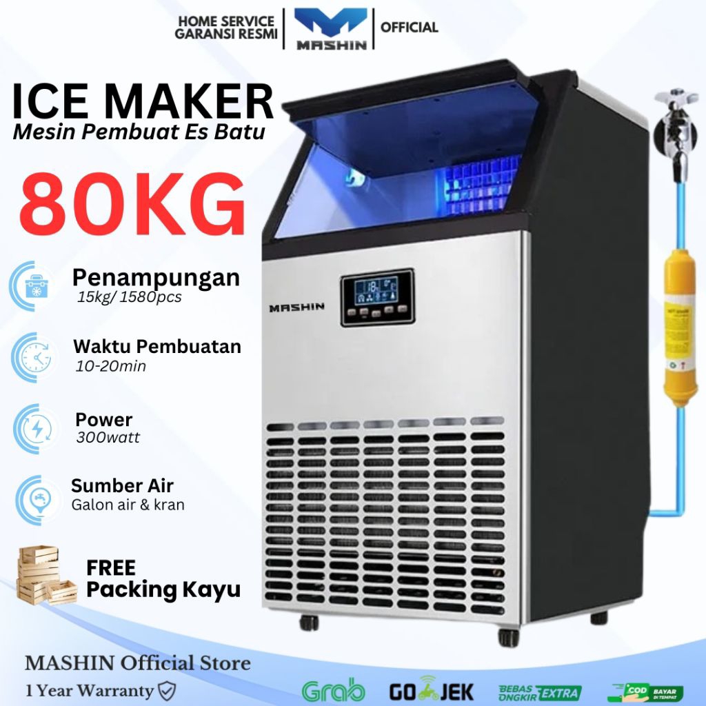 Mashin - Ice Maker Kapasitas 40-80kg/hari Pembuat Es Batu Besar
