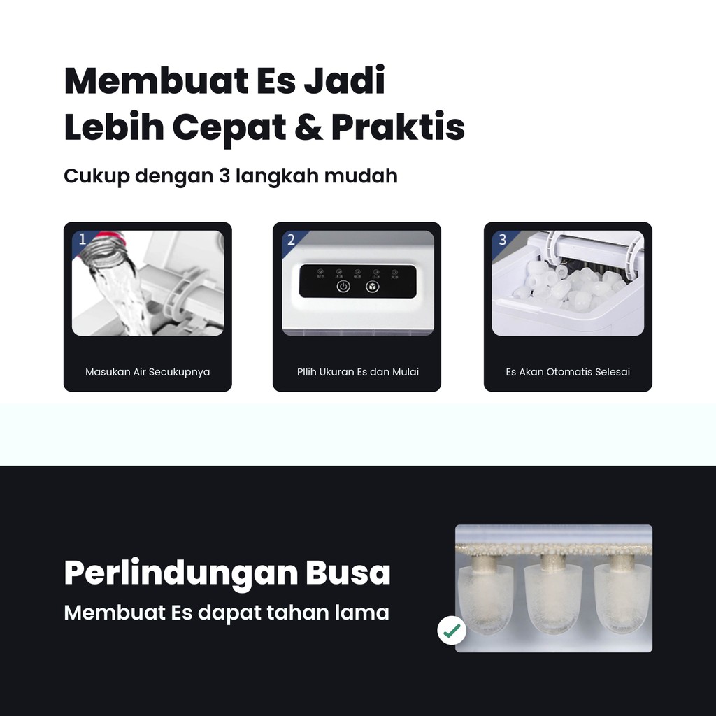 INFINILAPAN Ice Maker kapasitas tangki air 1,3L, ukuran kecil, daya rendah, dan otomatis | Mesin Portable Ice Maker Pemb