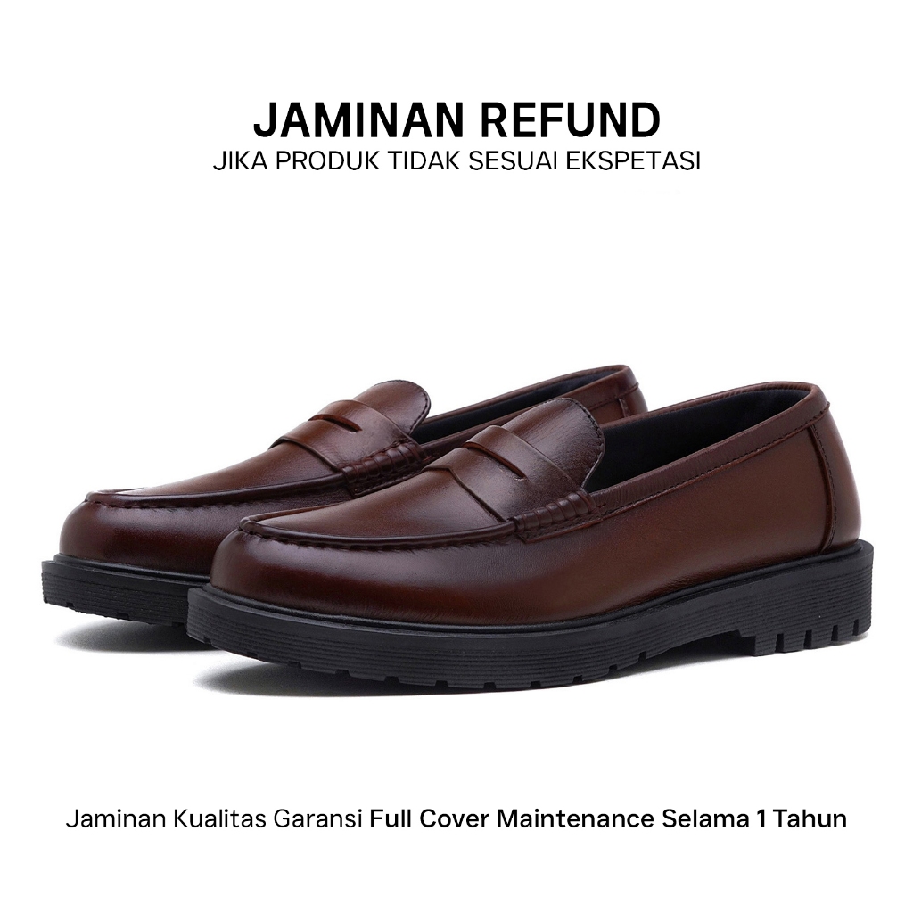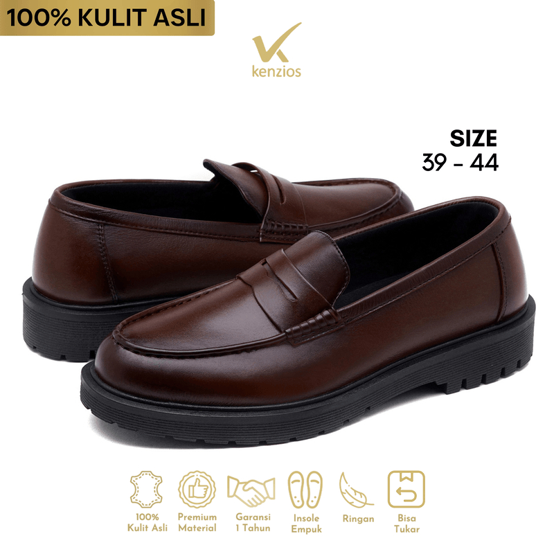 KENZIOS Sepatu Formal Loafer Kulit Asli KARN Brown