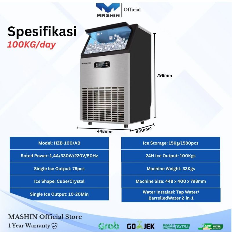 Mashin - Ice Maker Kapasitas 150kg/24jam Mesin Pembuat Es Batu Kristal Ice Cube Machine 40-150kg/day