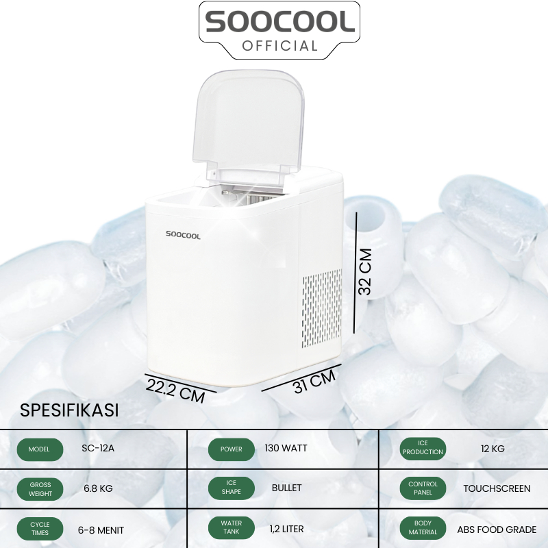 Mesin Pembuat Es Batu ESCOOL Ice Maker Portable 1,2L 130W Mesin Es Batu Produksi 12kg/24 Jam