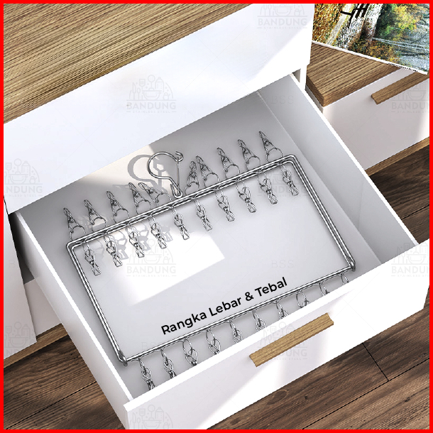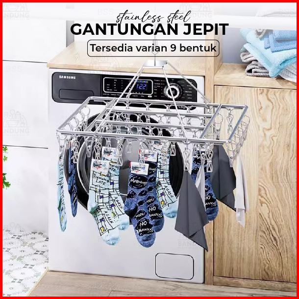 Gantungan Jemuran Stainless Steel 9 Model Dengan Jepitan Hanger Jemur Kaos Kaki Pakaian Dalam Multifungsi