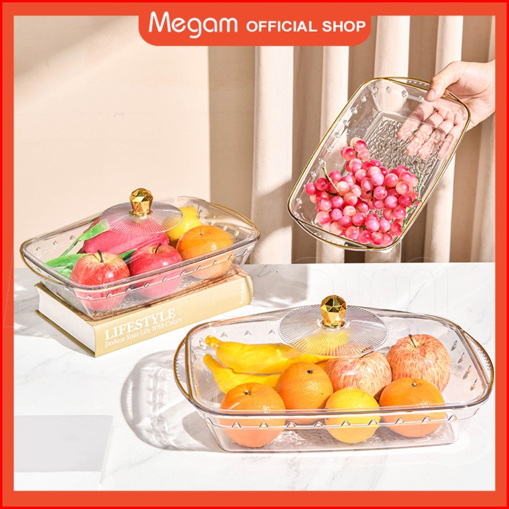 Megam Tempat Penyimpanan Buah Roti Nampan Tertutup Clear Aesthetic Food Tray Lebaran Hsb857