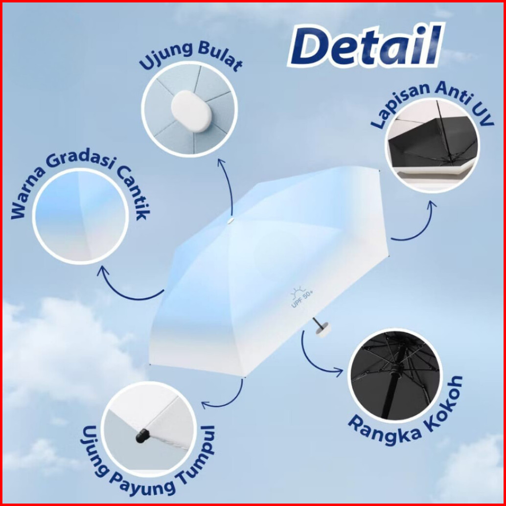 Payung Lipat Mini Uv Upf 50 Portable Umbrella Premium Anti Panas Hujan Ringkas Elegan