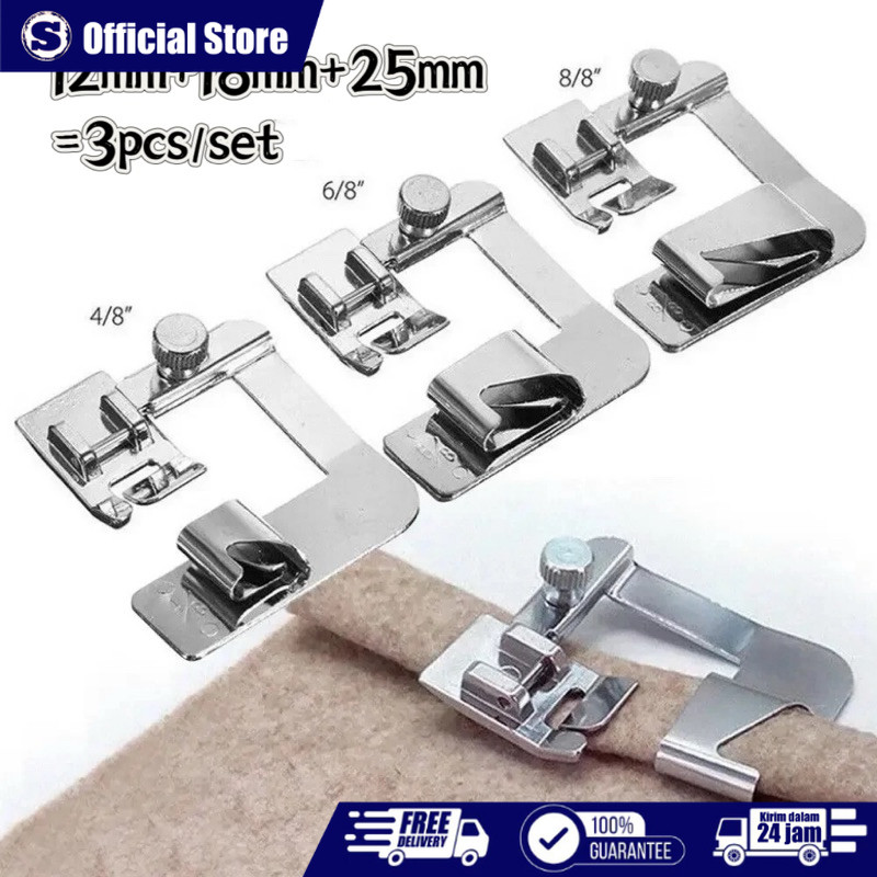 3pcs/set Sepatu Kelim Mesin Jahit High Speed Hemmer Foot Universal 4/8In 6/8In 8/8In Kaki Penekan Keliman Mesin Jahit