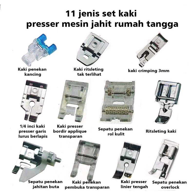 Sepatu Kelim/Lipat Gepeng/Hemmer Foot untuk Mesin Jahit Portable / Sepatu Set 11 Pcs/set Rumah Tangga Mesin Jahit Bagian