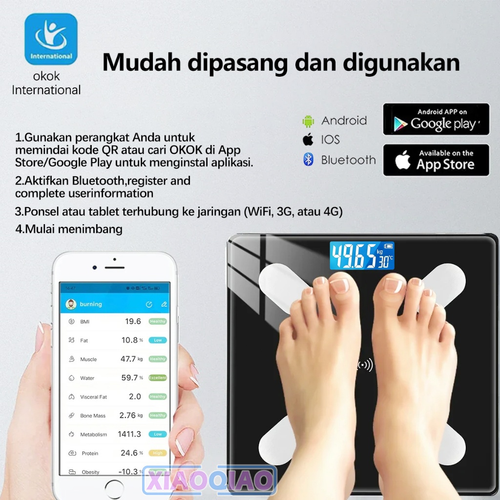Timbangan Digital 180KG USB Charge Timbangan Badan Fat Monitor Digital Scale Bluetooth APP Smart Scale